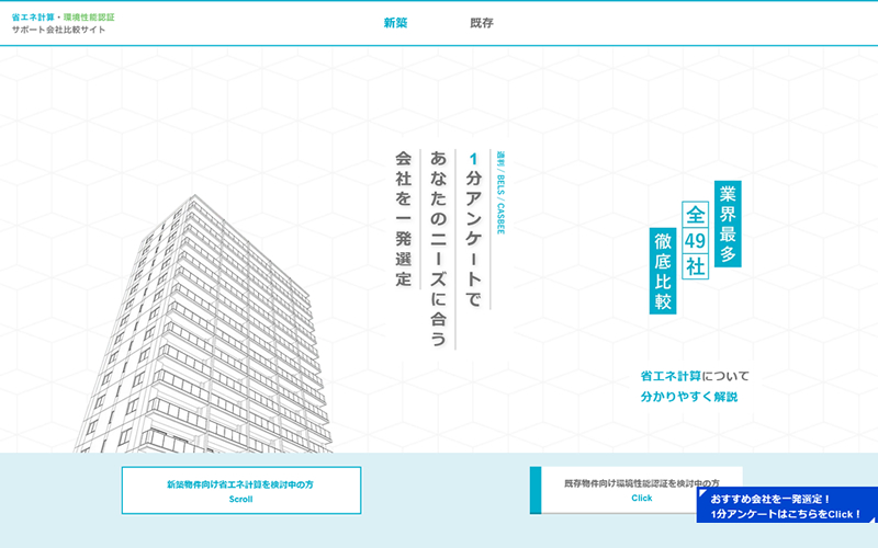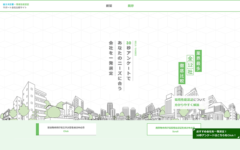 全国の省エネ計算・環境性能認証の専門会社を比較できる情報サイト。利用者の条件に合わせて最適な1社を紹介する仲介型サービス |