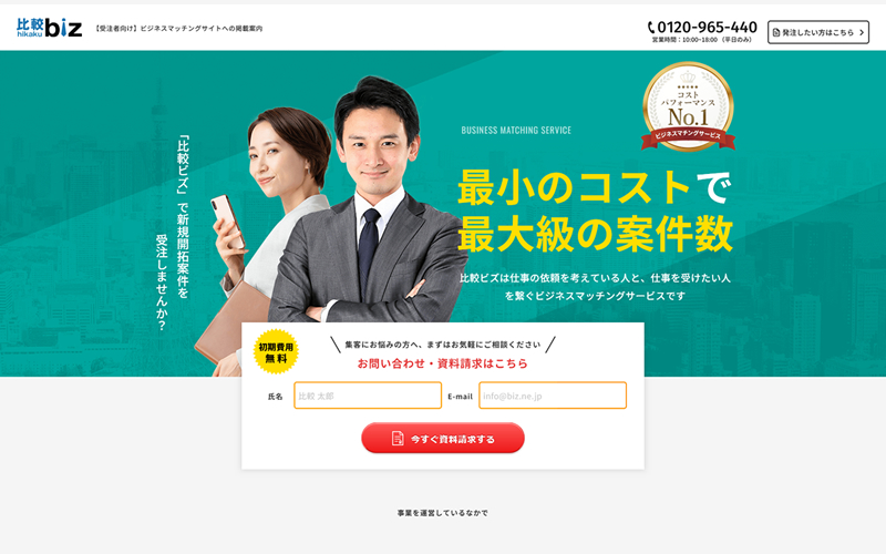 IT、士業、広告、内装など多業種を扱う性質が強い総合型のBtoBマッチングプラットフォーム |